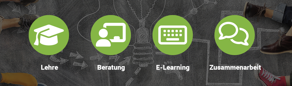 Die besten Ideen und Lösungen findet man im austausch mit anderen Menschen! Wir bieten unterschiedliche Formate des Zusammenkommens und des Zusammenarbeitens an. Dazu zählen themengeleitete Foren, eine Lernpartner*innenbörse und ILIAS-Arbeitsräume mit der Option zur gleichzeitigen Bearbeitung von Dokumenten, einer sicheren Dateienablage und des visuellen wie schriftlichen Austauschs.